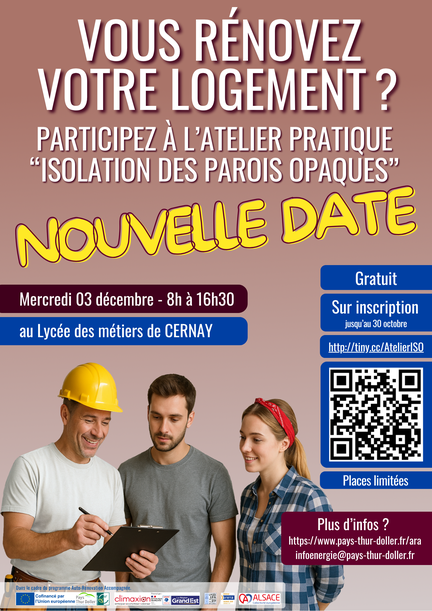 Dans le cadre du programme Auto-Rénovation Accompagnée, le PETR du Pays Thur Doller, soutenu par la CeA et le programme de financement Européen Leader, organise des sessions de formation gratuites pour les auto-rénovateurs.